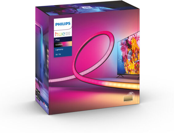 Opplev spennende hjemmeunderholdning med Philips Hue Play gradient lightstrip, laget for TV-er pÃ¥ 75 tommer. Med Hue Gradient Lightstrip fÃ¥r du en kombinasjon av hvitt og farget lys som reagerer pÃ¥ innholdet pÃ¥ skjermen. Inkluderer strÃ